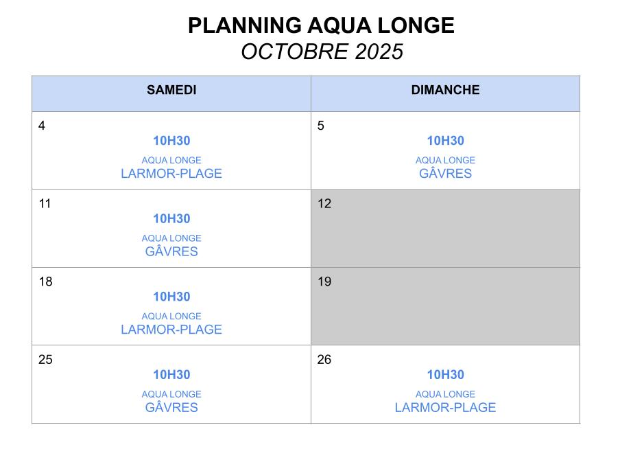Le matériel aquatique (frites, gants palmés, haltères, etc…) est fourni pour l’activité.